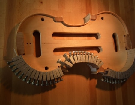 クランプ一つの幅は6mmでバイオリンの片面片側でおよそ47~50個必要になります。
