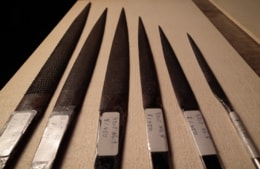 とにかく良く切れる!!ブロックやネックの荒削りに大変便利です。N.6はバイオリンのヘッドの「喉」の部分など狭いところの加工に活躍します。
