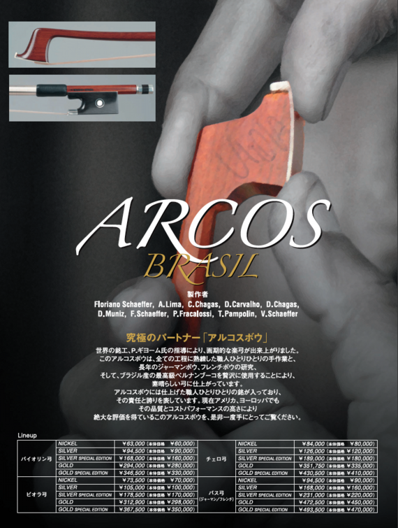 アルコス社はブラジルで楽弓を中心に自国に産するフェルナンブコ製品を提供するメーカです。