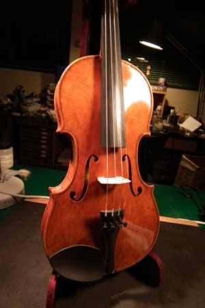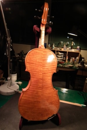 "del gesùデル・ジェズ"の愛称で知られるジュゼッペ・グァルネリの1736年製"Cessole"ヴァイオリンからデザインを起こし3/4サイズにアレンジした楽器です。